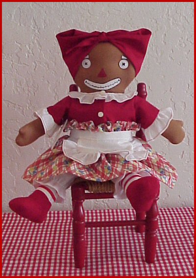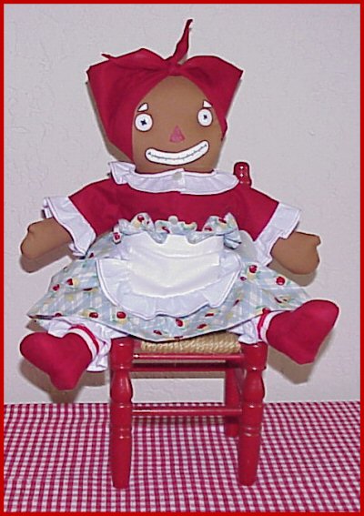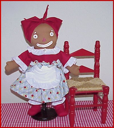 Feet" Belindy was introduced. She was 15" with front-facing boxy feet, with a medium brown cloth body; UN-out-lined nose: red blouse, shoes, and bandana; shirt-button eyes; She had two snaps on the front of her blouse; she had no company markings, but because of her well-documented and unusual boxy feet, she is readily recognized as Georgene's Belindy.