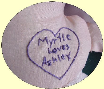 I decided to type up the "Letter to Ashley from Myrtle", shown below, to put in the gift with the doll......
