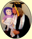 He told how the doll and little girl had been inseparable, and after the doll became fragile from so much loving and kissing.......he was afraid to wash it, for fear it would fall apart. He had often taped her back together with duct tape, and had to redraw certain facial features back on, that were washed away with tears and kisses.
